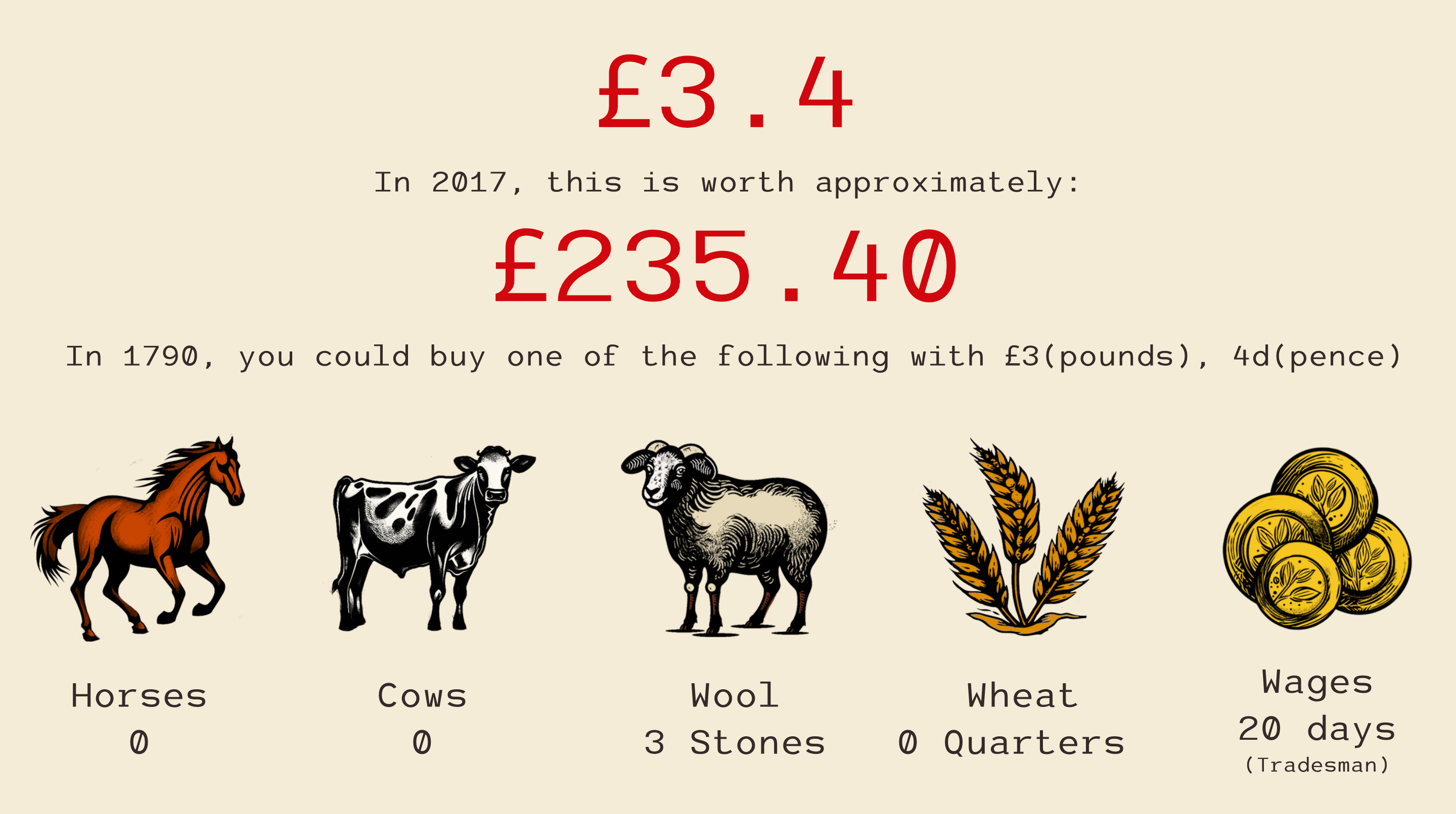 The 3 month combined income incurred by the inmates (table below) amounted up-to £3.4 in 18th century, which today with inflation is equavalent to £235.40. What use could have the inmates put their money to? Inspired by The National Archives, below are some interesting purchase options.
